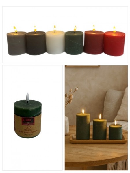 Kerze Rustic LED Echtwachs, flackernd Ø 7,5 x 10 cm mit Timer in 6 FarbenRustic-Kerze flackernd (Flammeneffekt)