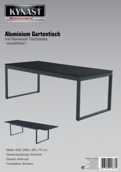 Produktinformationen "Gartentisch ausziehbar 200/298x95x75 cm mit Nonwood-Tischplatte, schwarz"