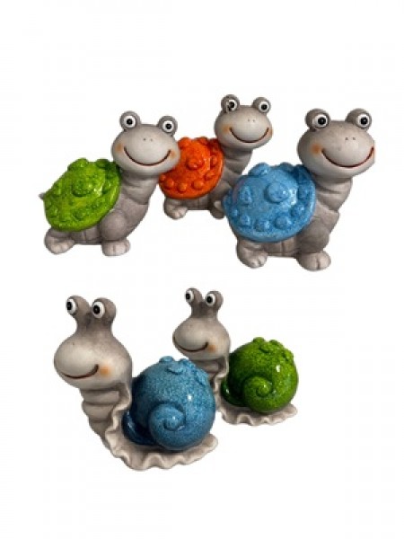 G Dekofiguren Schnecke & Schildkröte in 3 Farben, glasiert