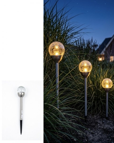 Solar Glaskugellampe LED Ø 6 x 34,5 cm im DisplayGartenleuchte in Bruchglas-Optik
